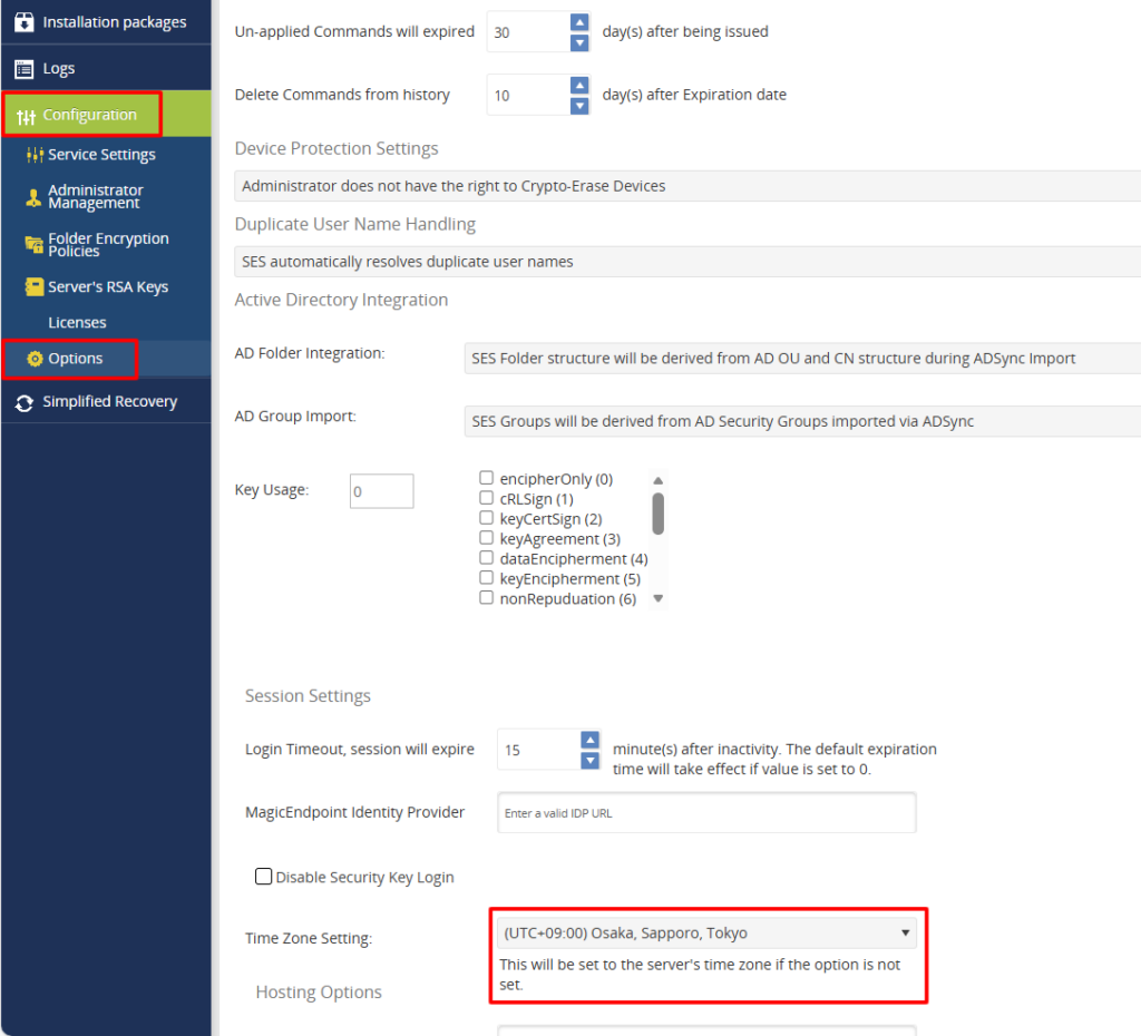Time Zone Setting で (UTC +09:00) Osaka, Sapporo, Tokyo